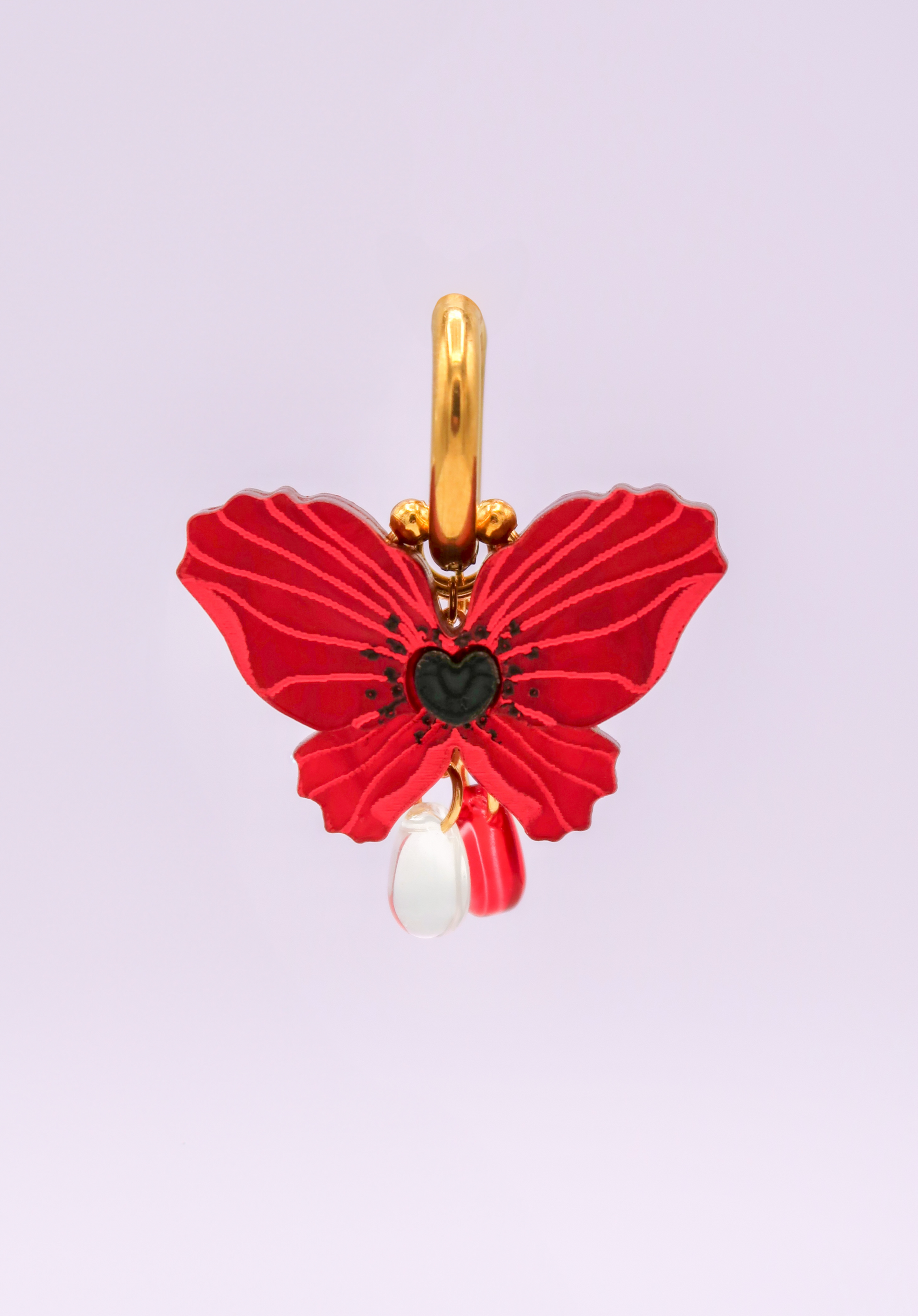 - Amapola mariposa de metacrilato rojo nacarado y negro nacarado