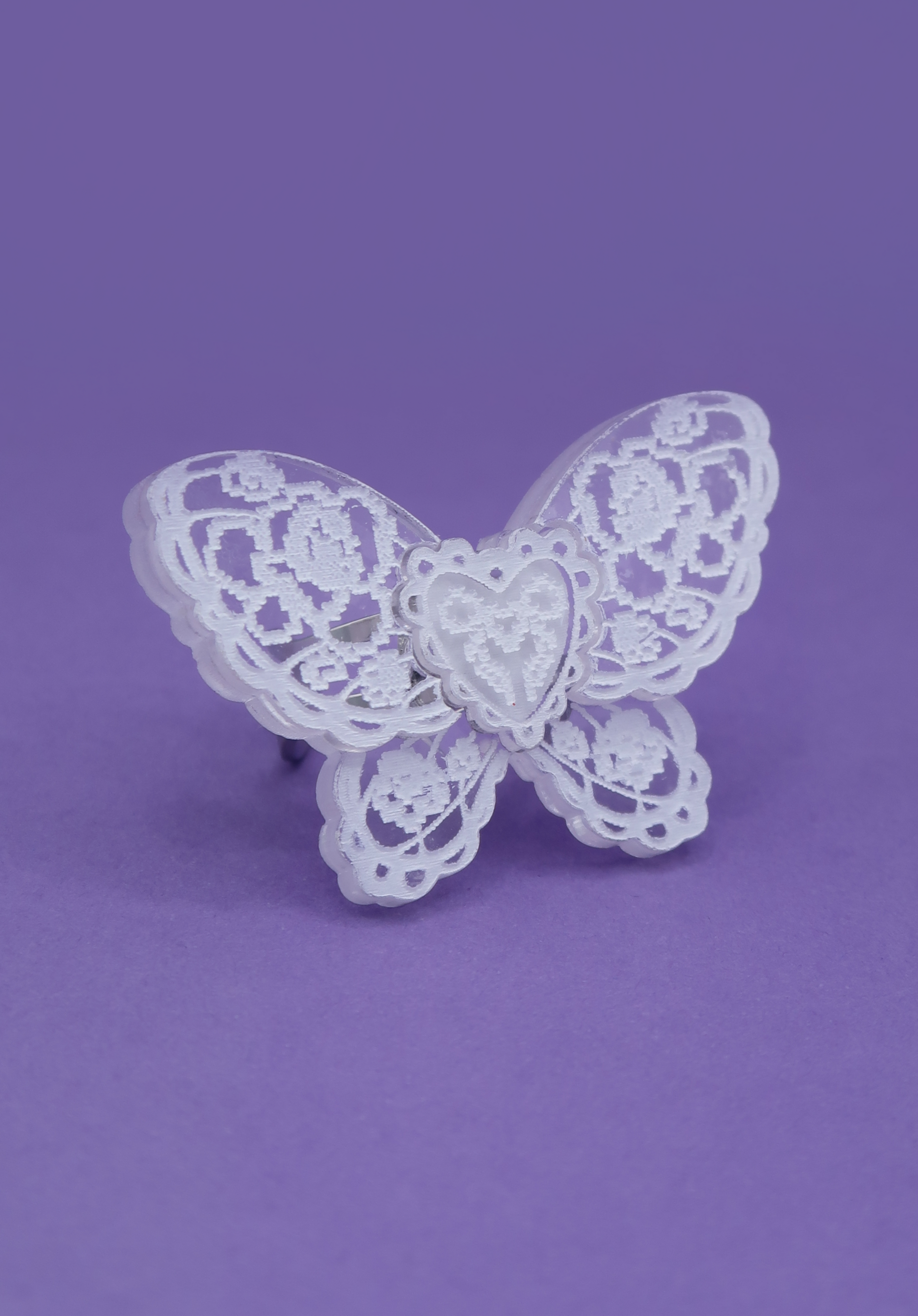 - Encaje mariposa de metacrilato transparente y grabado blanco