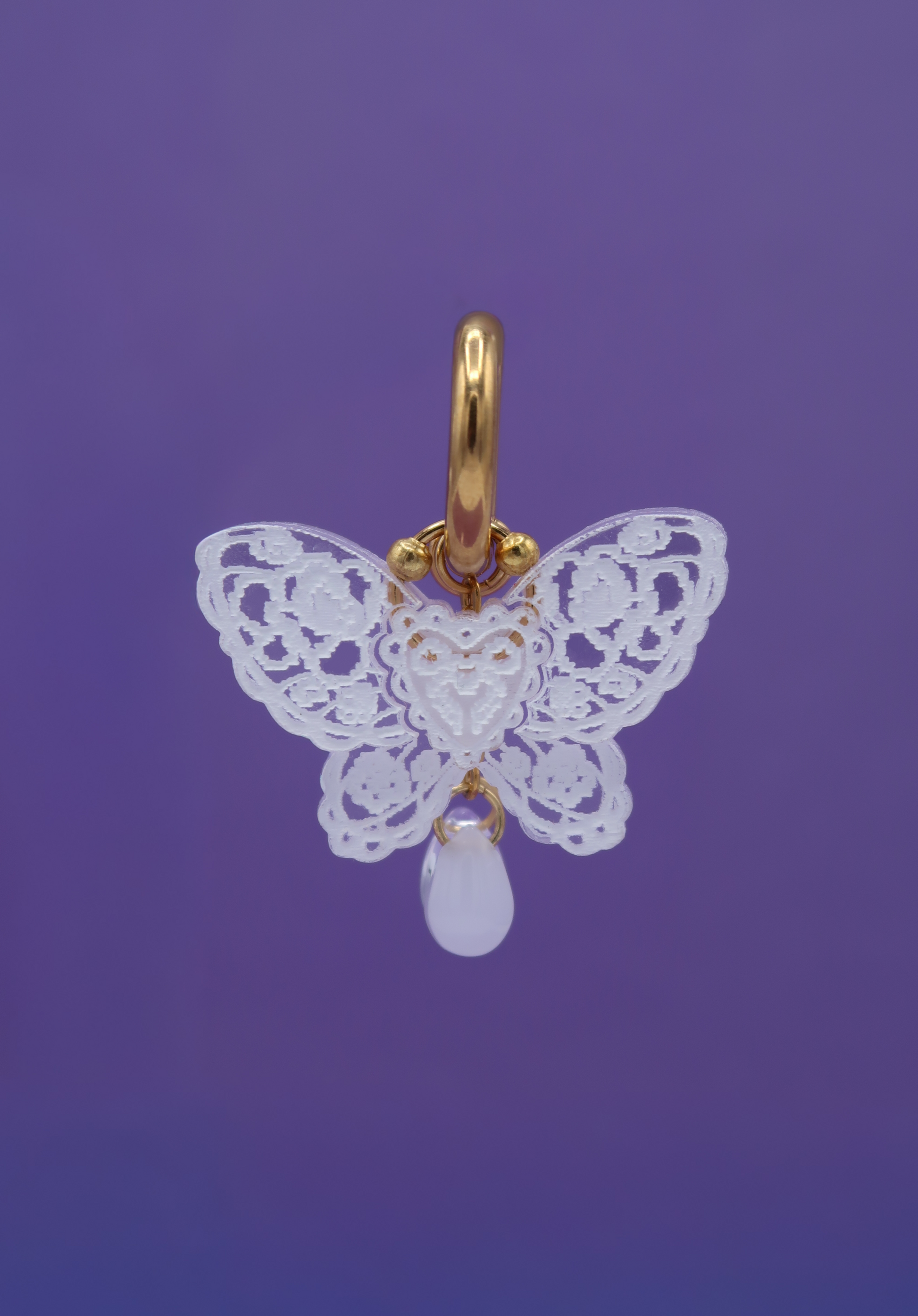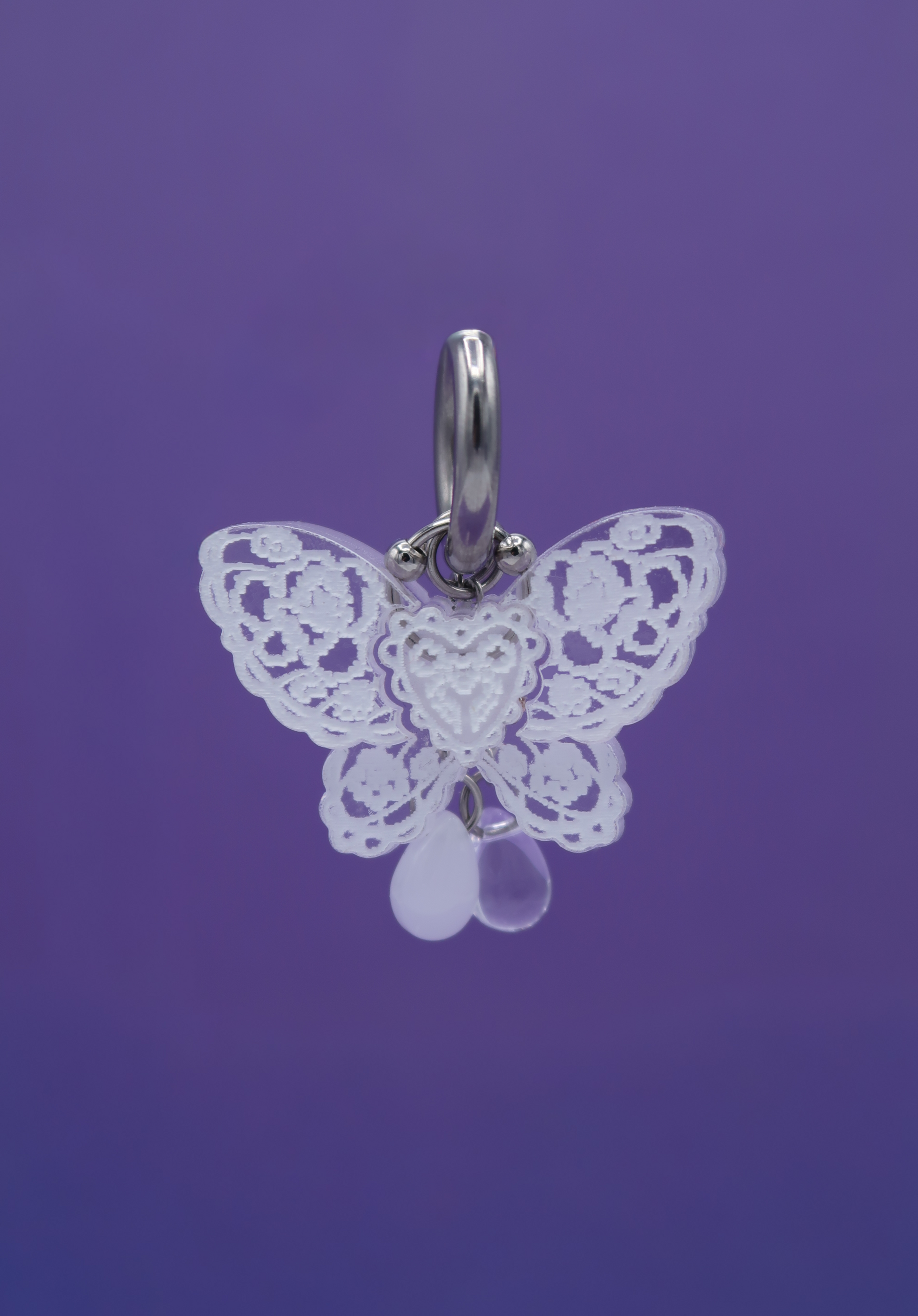 - Encaje mariposa de metacrilato transparente y grabado blanco