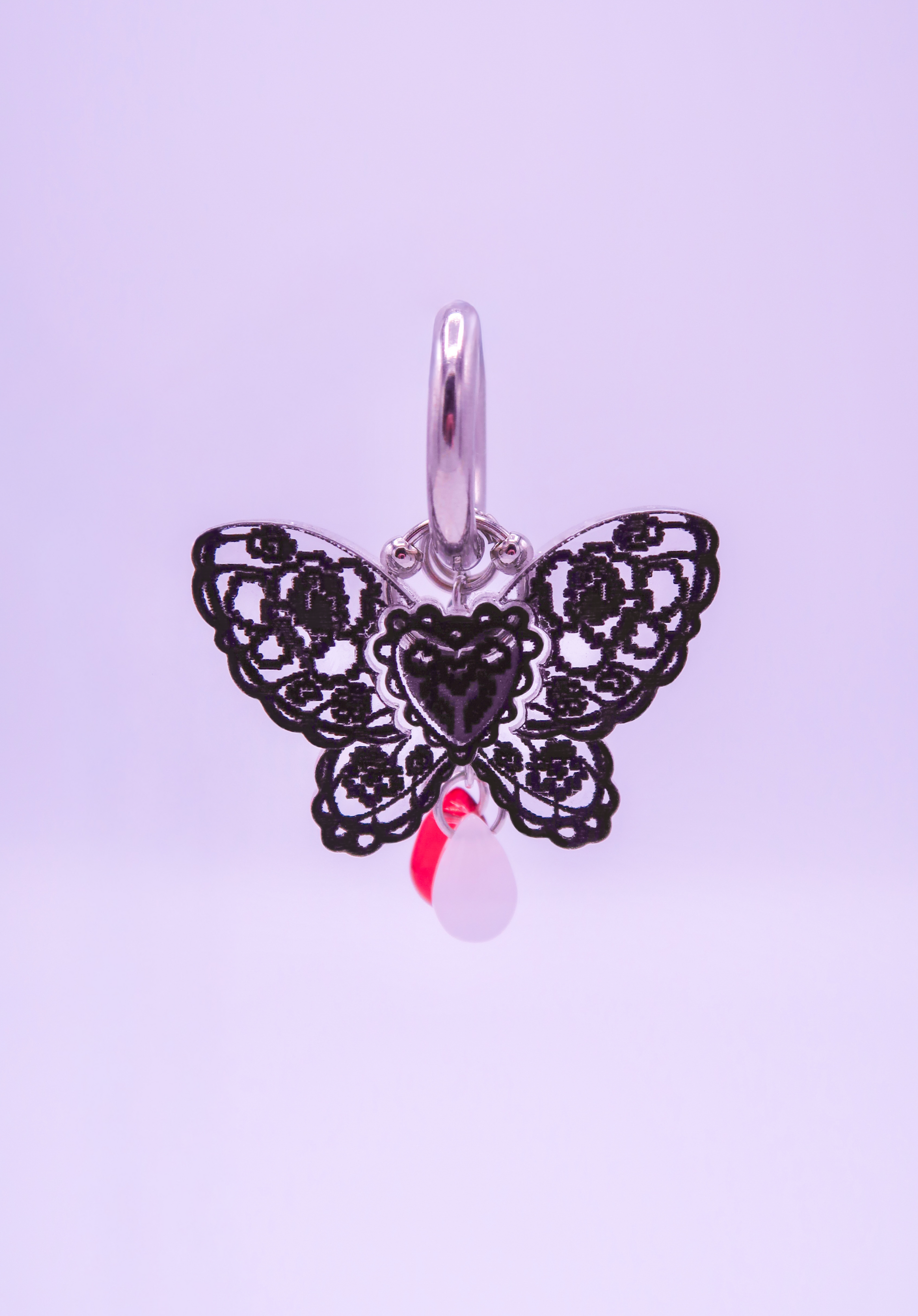 - Encaje mariposa de metacrilato transparente y grabado negro