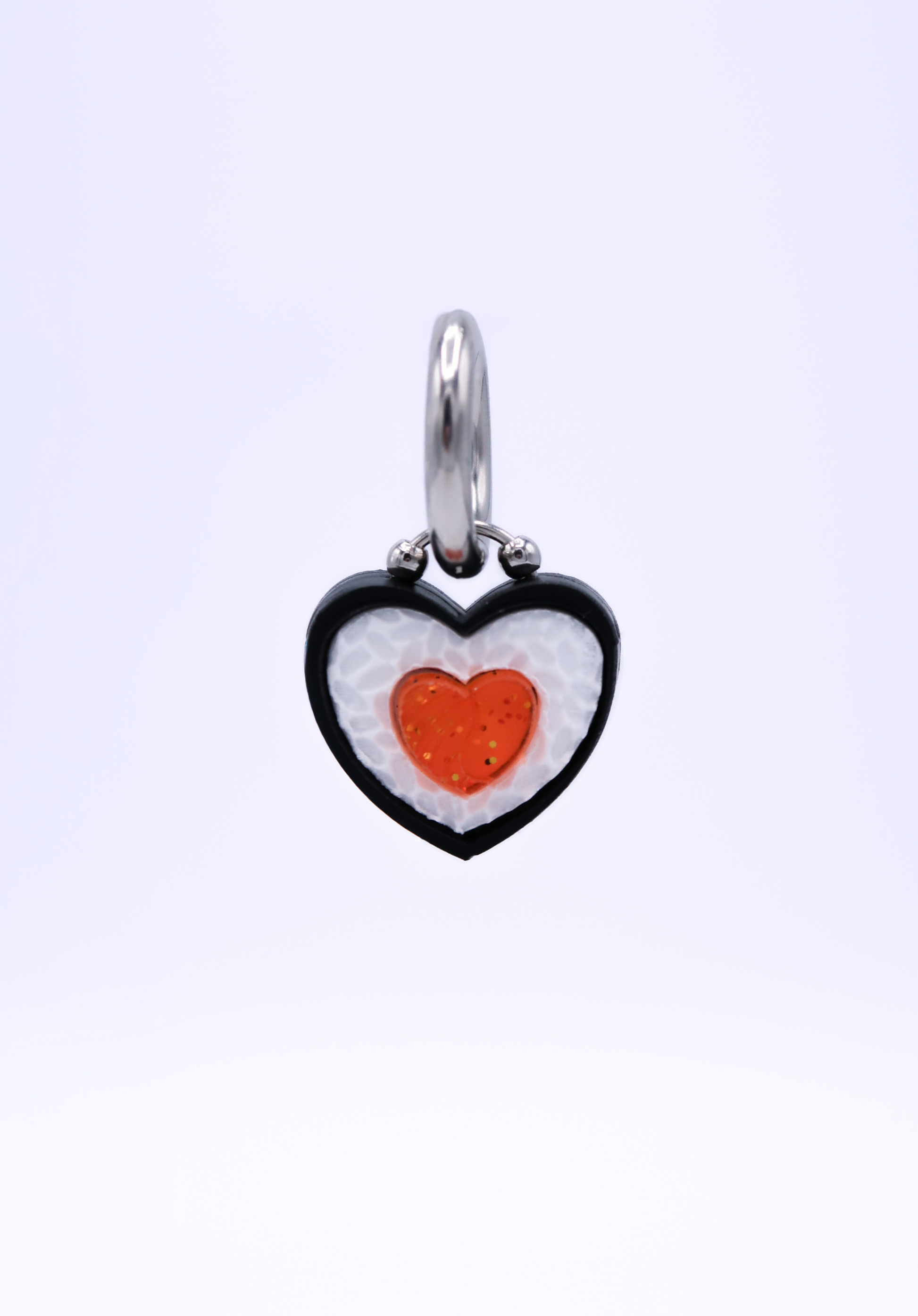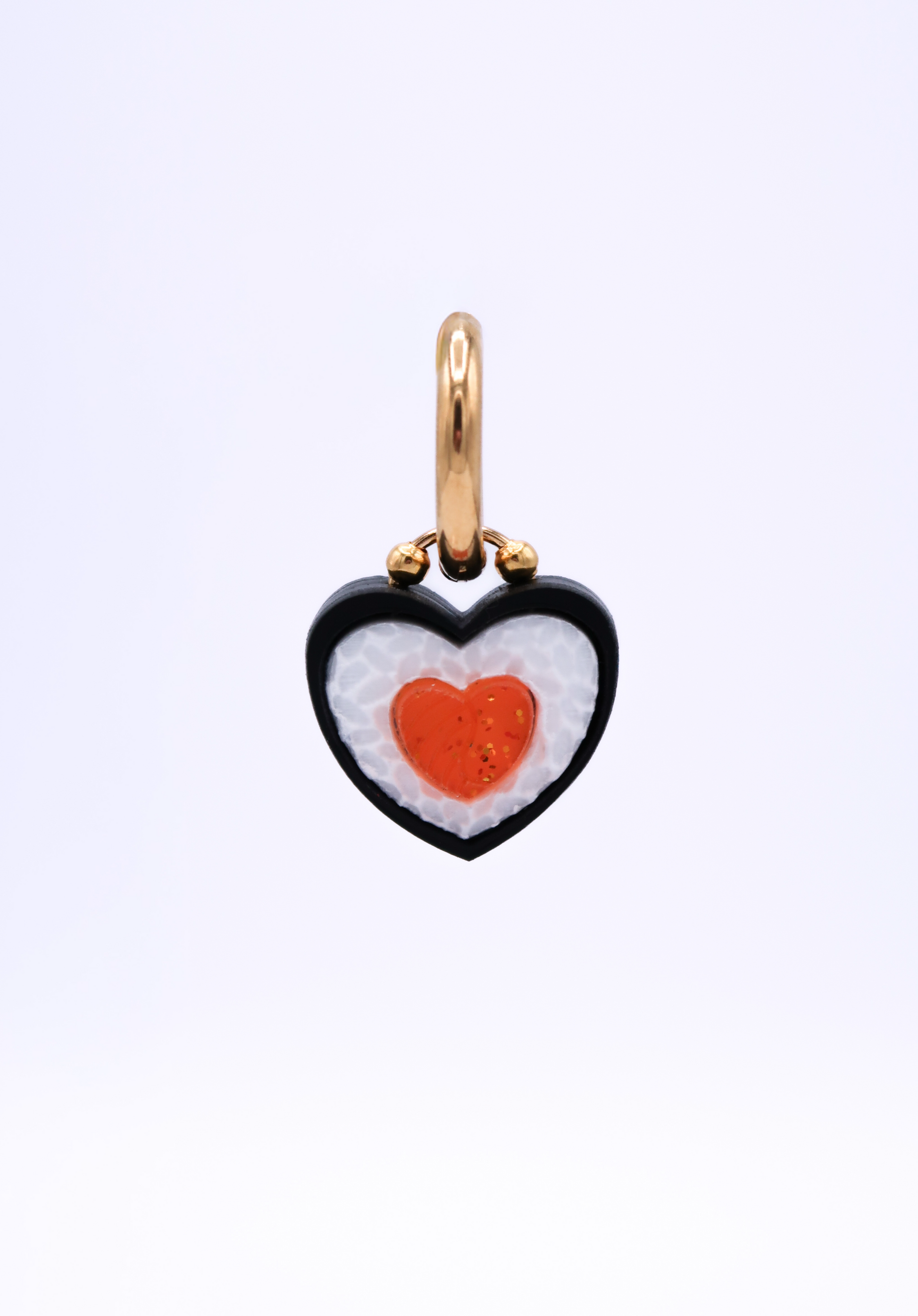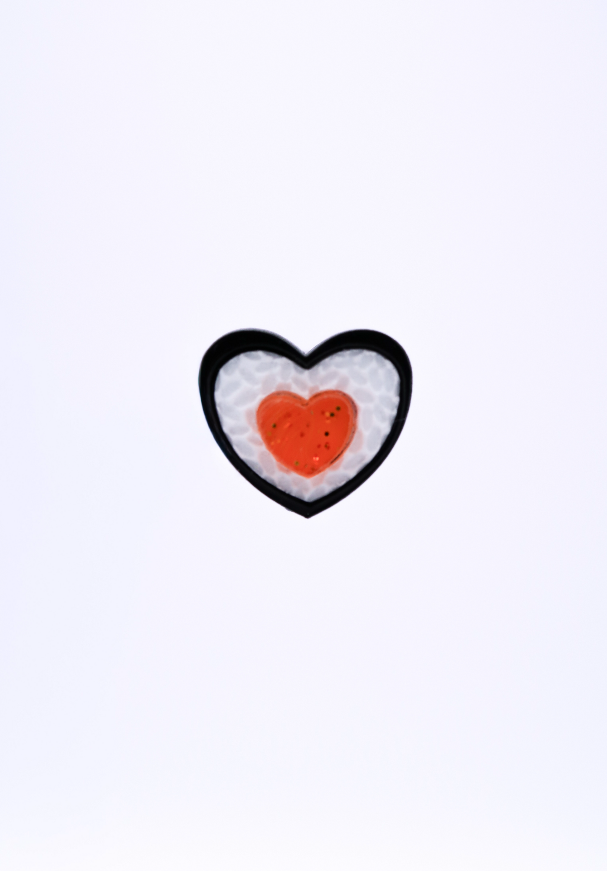 - Makis de metacrilato negro, blanco con textura y relleno de naranja con purpurina