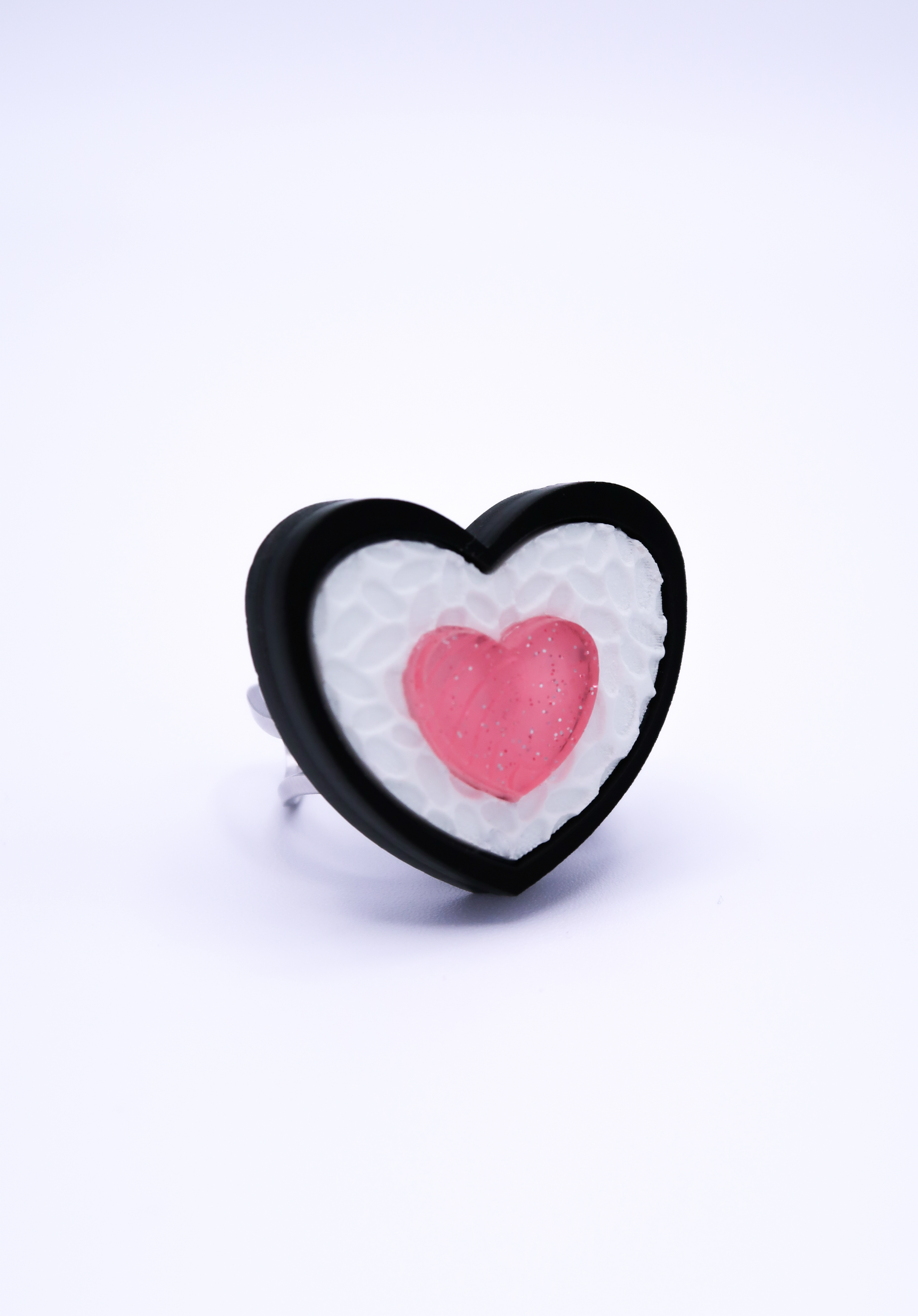 - Maki de metacrilato negro, blanco con textura y rosa de purpurina