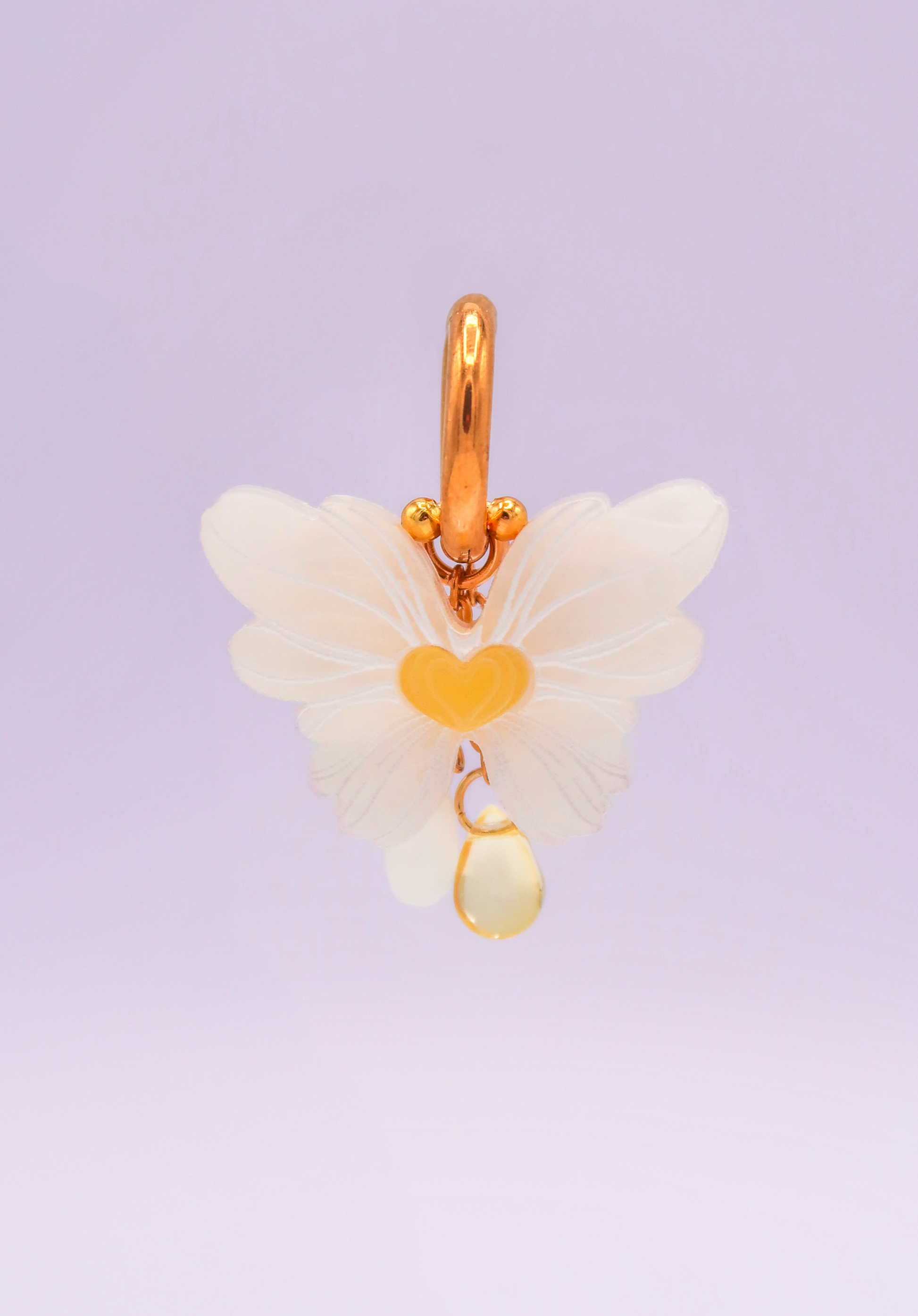 - Margarita mariposa de metacrilato blanco nacarado con reflejos amarillos y amarillo mate