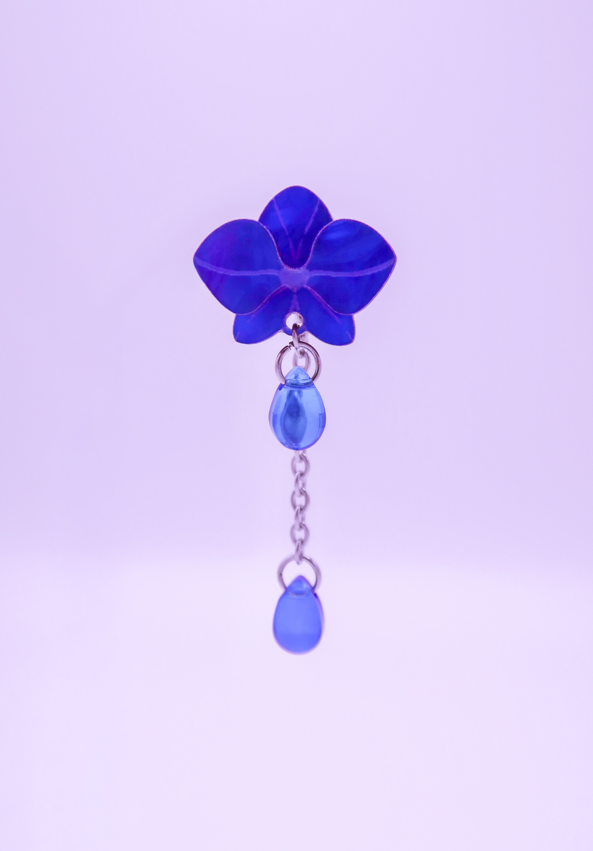 - Orquídea mariposa de metacrilato azul eléctrico nacarado (cada modelo tiene diferente patrón)