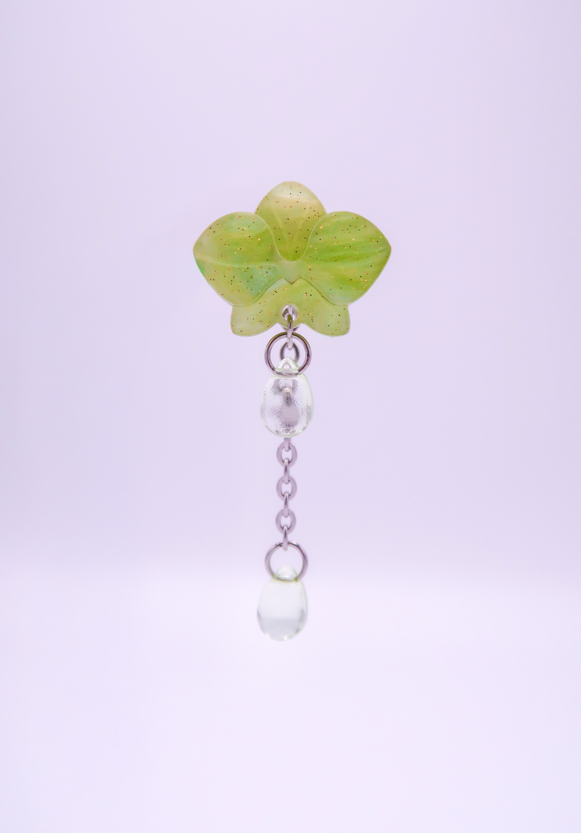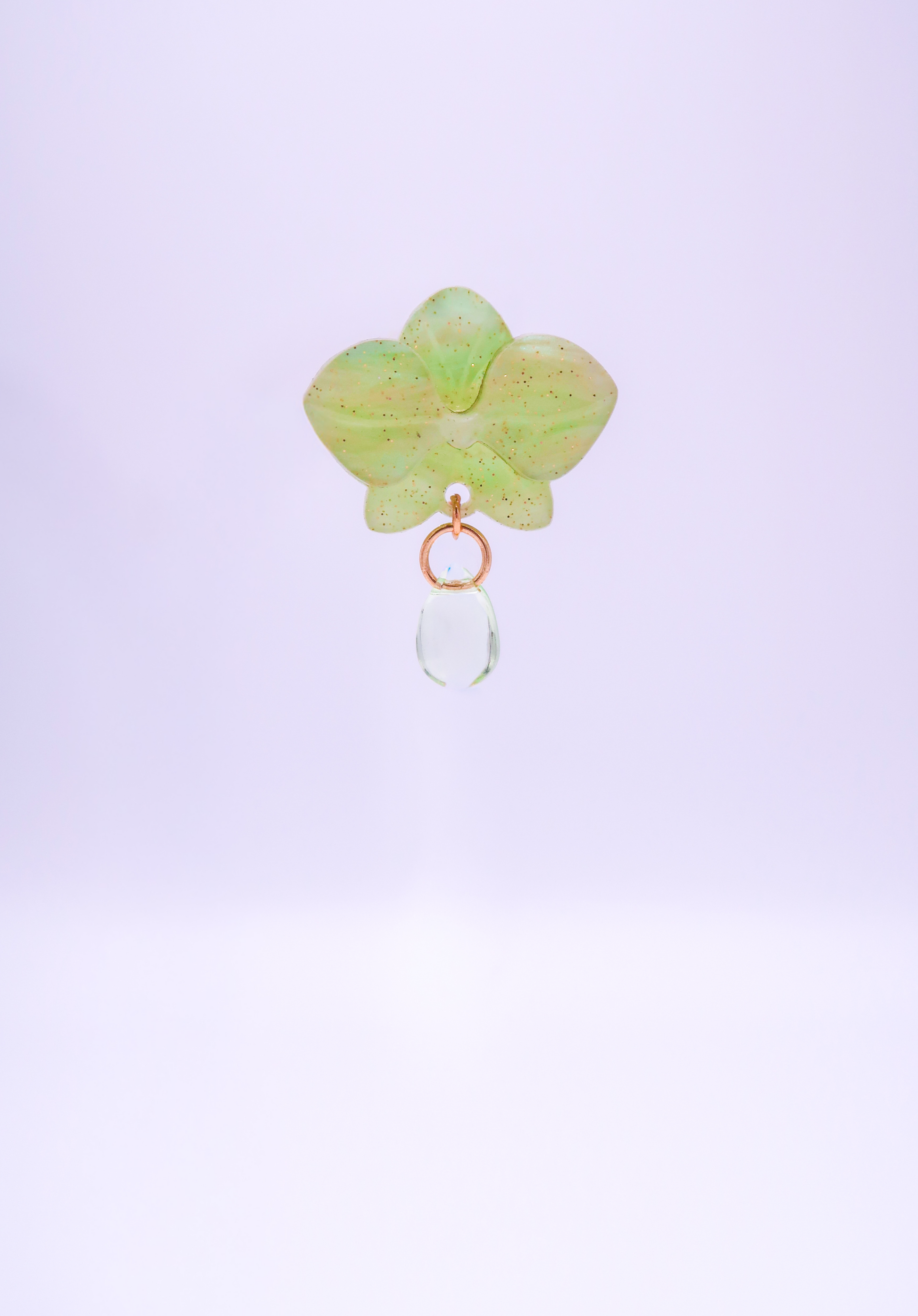 - Orquídea mariposa de metacrilato verde nacarado con purpurina (cada modelo tiene diferente patrón)
