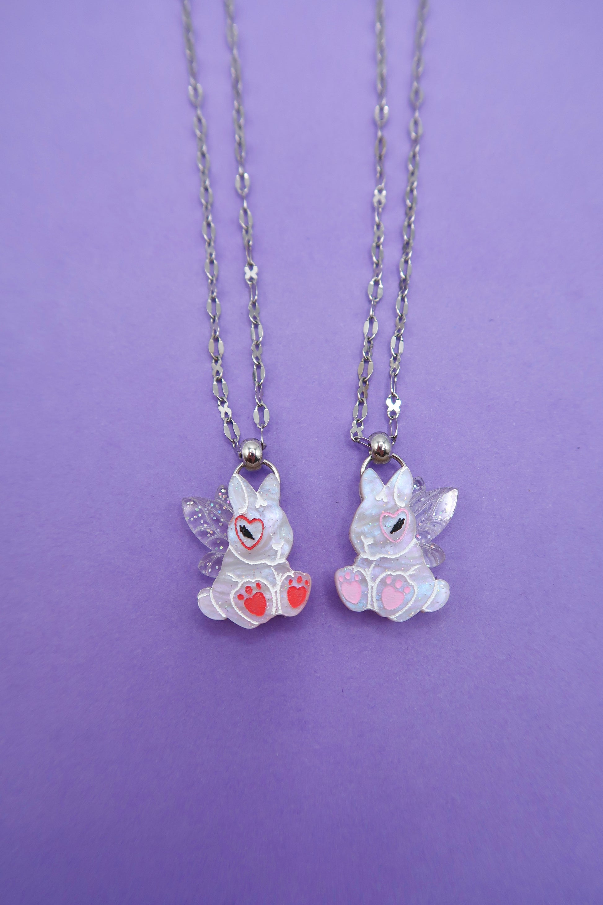 - Conejito alado de metacrilato blanco nacarado con purpurina y transparente con purpurina