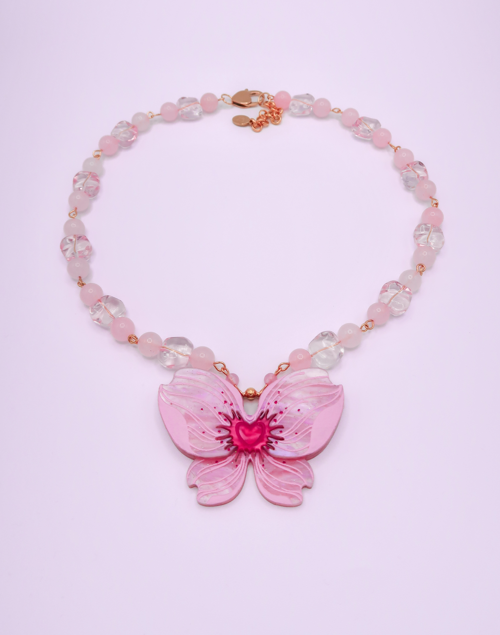 - Sakura mariposa de metacrilato rosa nacarado y fucsia nacarado con partículas de purpurina