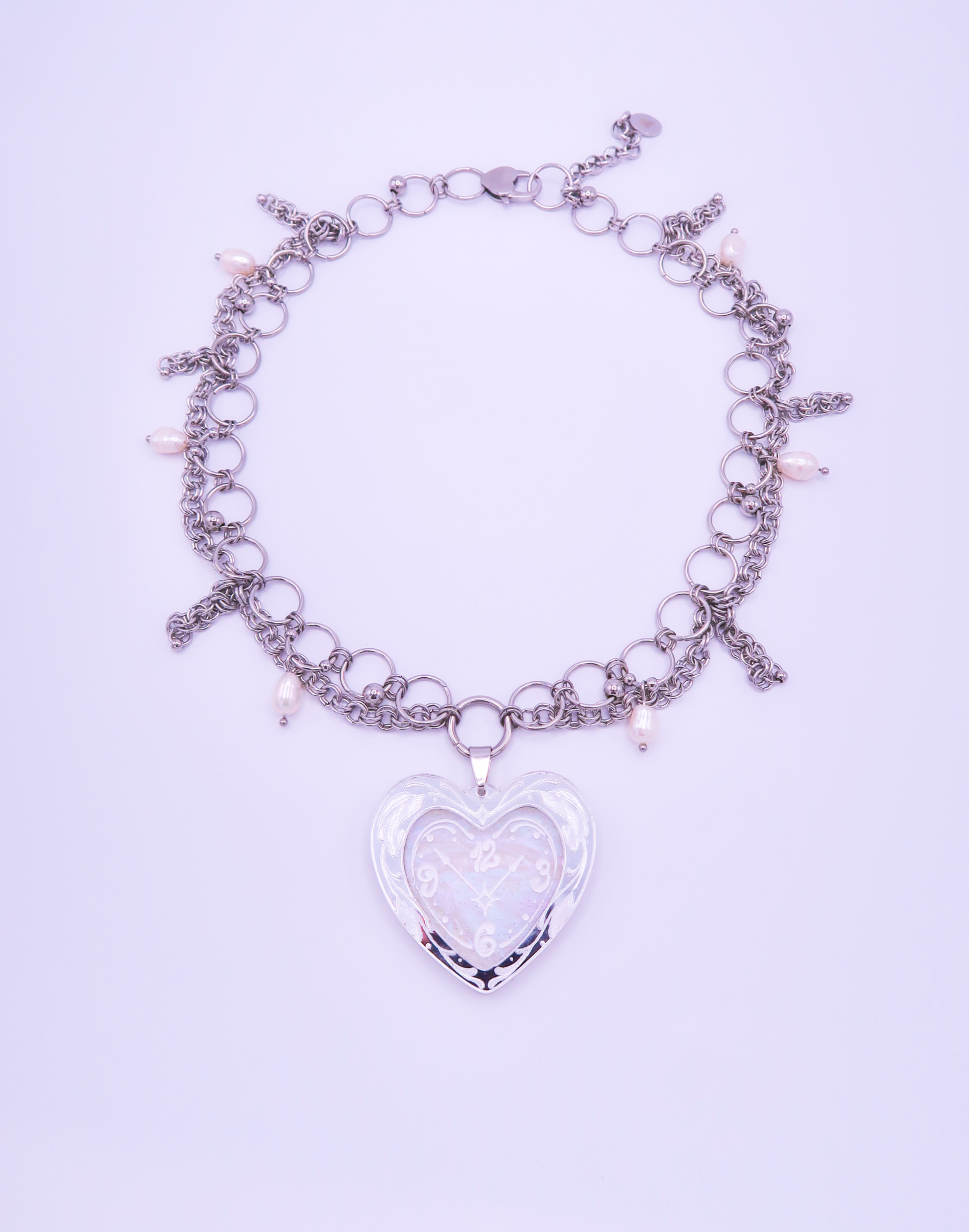 - Reloj corazón de metacrilato blanco nacarado y espejo plateado